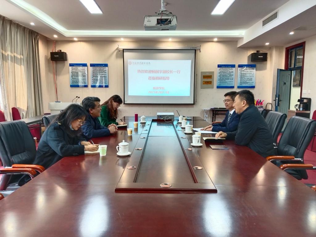 2月17日下午,副校长杨国宇、科技处处长潘春梅、科技处科长高畅到beat365官网调研指导科研工作,beat365英国官方网站院长王德静、书记权太举、办公室主任段续良、科研办公室主任王泽峰及部分博士老师参加了调研会议。