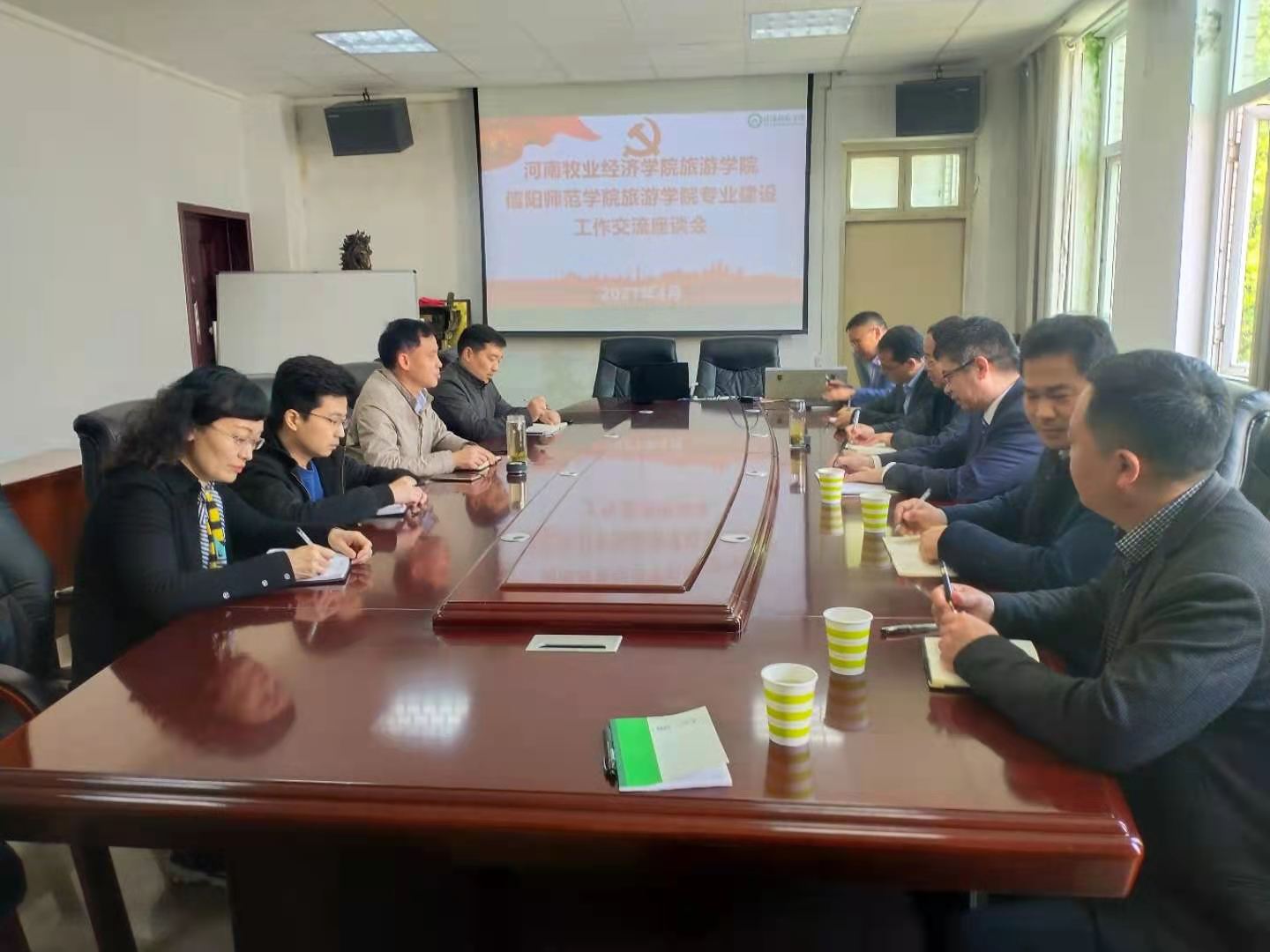49日,beat365英国官方网站党委书记李喜民、院长王德静、副院长王中雨及会展经济与管理、酒店管理、景区管理教研室主任、教师代表赴信阳师范学院beat365英国官方网站考察交流,调研一流专业建设情况。信阳师范学院beat365英国官方网站院长彭荣胜、副院长郭俊升及旅游管理系主任、酒店管理系主任及部分教师代表参加了座谈。