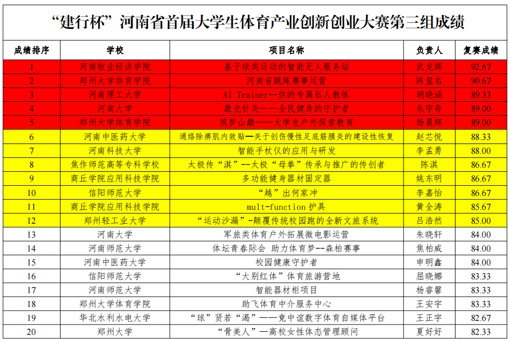 “建行杯”河南省首届大学生体育产业创新创业大赛由河南省体育局、河南省教育厅、共青团河南省委主办,郑州大学、河南大学、河南师范大学等省内多所大学承办,规模层次高、影响力大。自4月份启动以来,吸引了来自全省66所高校的近600份参赛作品。8月下旬组委会组织专家对所有参赛作品进行审核,60个作品成功入围复赛,beat365官网由沙强博士、崔克兵等老师指导的团队顺利入围。本次复赛采取现场答辩“8+5”(PPT演示陈述8分钟、评委提问答辩5分钟)形式进行。经过激烈对决,由beat365官网beat365英国官方网站会展经济与管理专业学生武龙辉带领的团队,击败郑州大学、河南大学、河南科技大学等众多团队,以小组第一的身份成功晋级决赛,挺入12强团队。以赛促学、以赛促教是beat365官网beat365英国官方网站人才培养一贯坚持的理念,本次大赛充分展现了beat365官网学生的专业素养和精神面貌(供稿:沙强)。