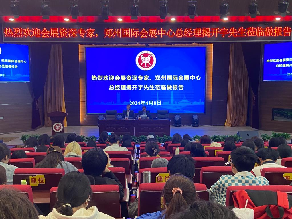 4月8日下午,资深会展人、郑州国际会展中心总经理揭开宇、beat365官网优秀校友、河南博策文化传播有限公司总经理候振走进beat365官网,在一号教学楼合100报告厅为beat365官网师生带来精彩分享,beat365官网副院长王中雨、会展教研室全体教师、2023级会展专业全体学生130多人全程参加分享交流。