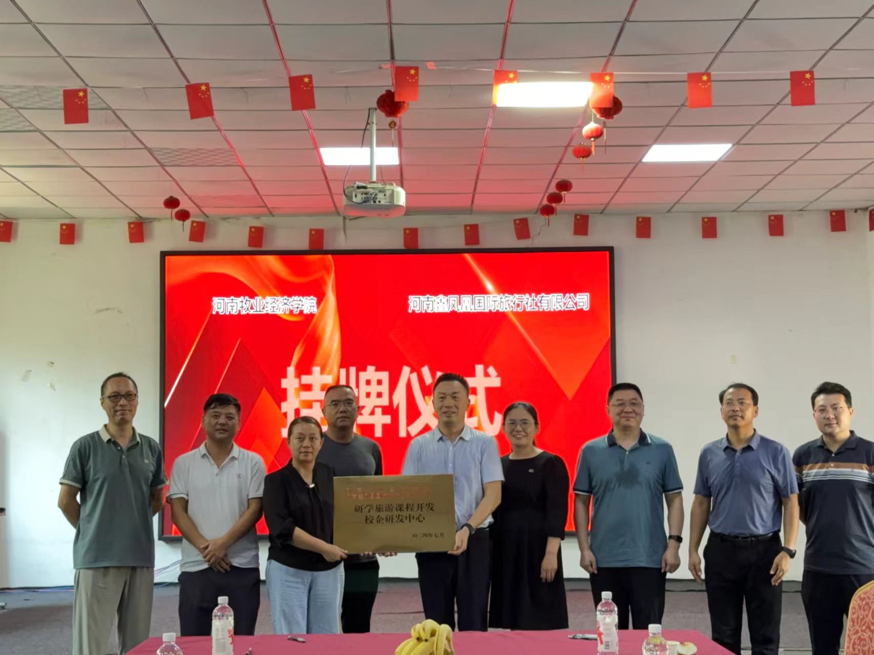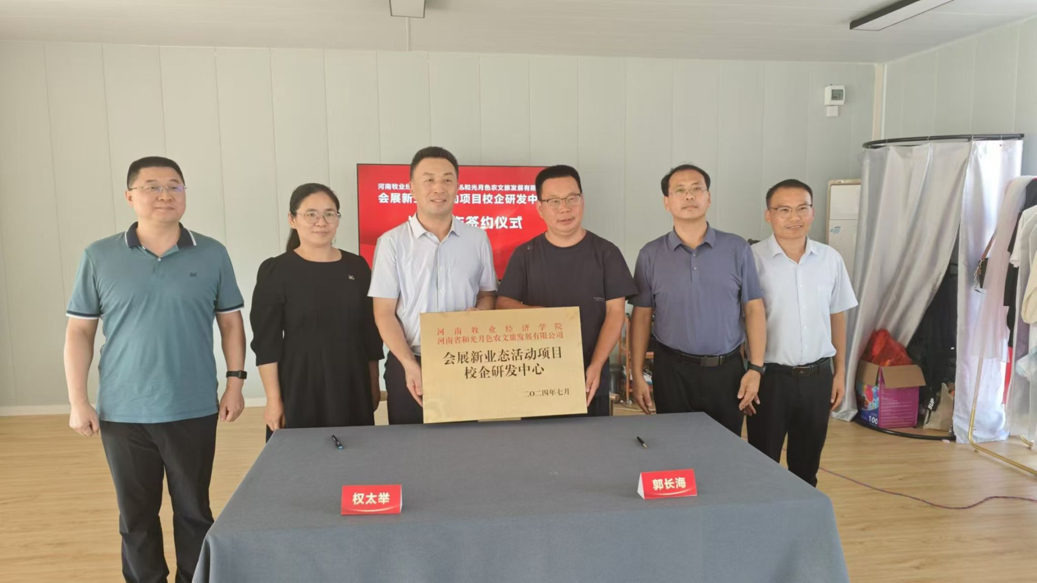 9月20日,beat365官网科学技术处副处长史岳鹏、副处长张红霞,beat365英国官方网站党委书记权太举、副院长王中雨、科研办公室主任王泽峰、会展管理教研室主任连建功一行六人前往河南鑫凤凰国际旅行社有限公司、河南省和光月色农文旅发展有限公司,举行“校企研发中心”合作协议签订和揭牌仪式,并与两家企业开展座谈。