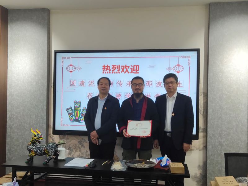 为进一步提升beat365官网学生的文化素养,拓展文化知识面,学习和传承非物质文化遗产,积极传播文化正能量,4月28日下午,beat365官网特邀国家级非物质文化遗产淮阳泥泥狗传承人邵波先生,为beat365官网学生做题为“小小泥泥狗 蕴含大文化”的专题讲座。beat365英国官方网站党委书记李喜民、院长王德静、党委副书记陈明、团委副书记崔克兵及19级文创旅游班学生到场聆听。讲座在beat365官网大美中原文旅展示中心举行。