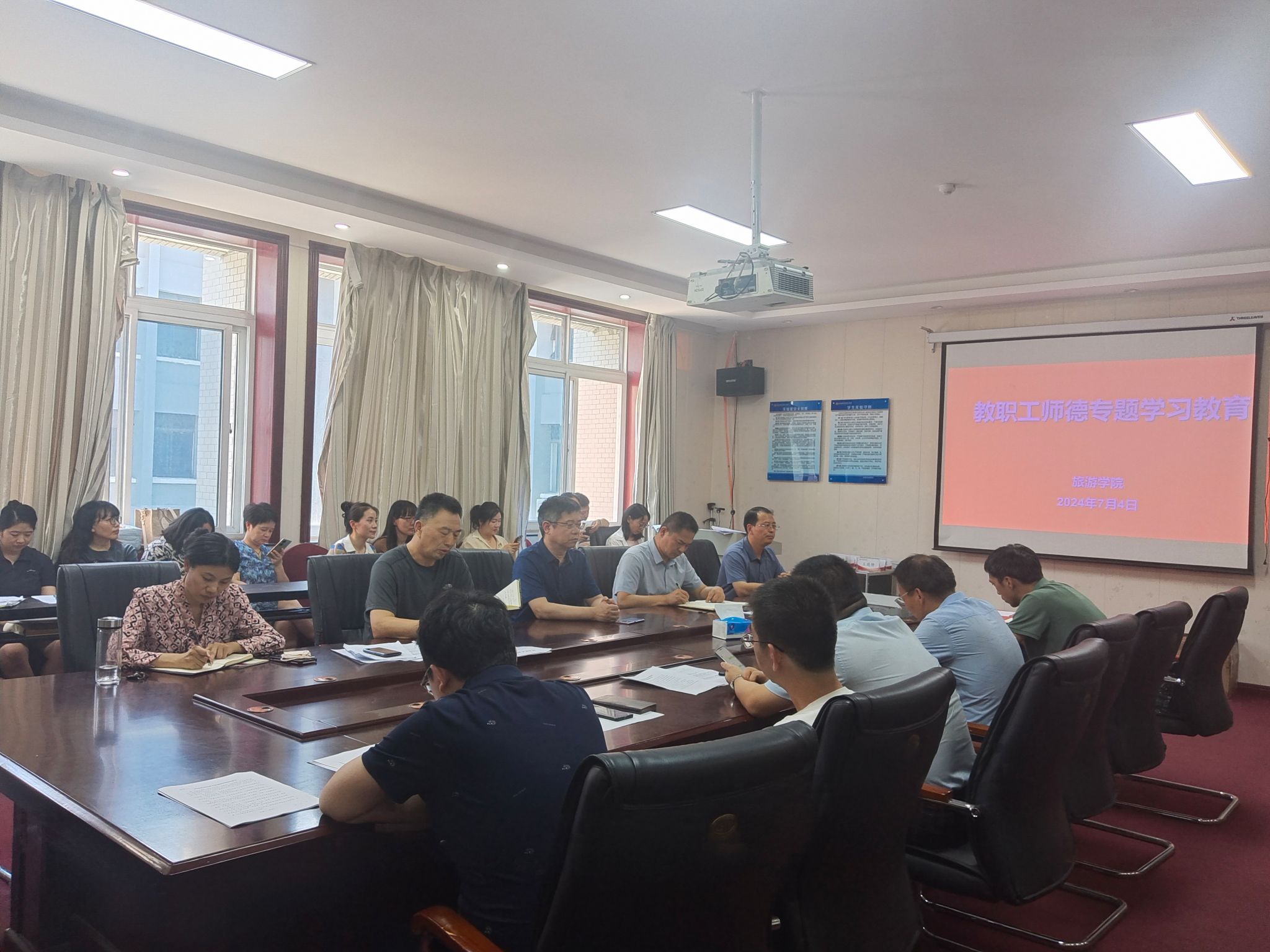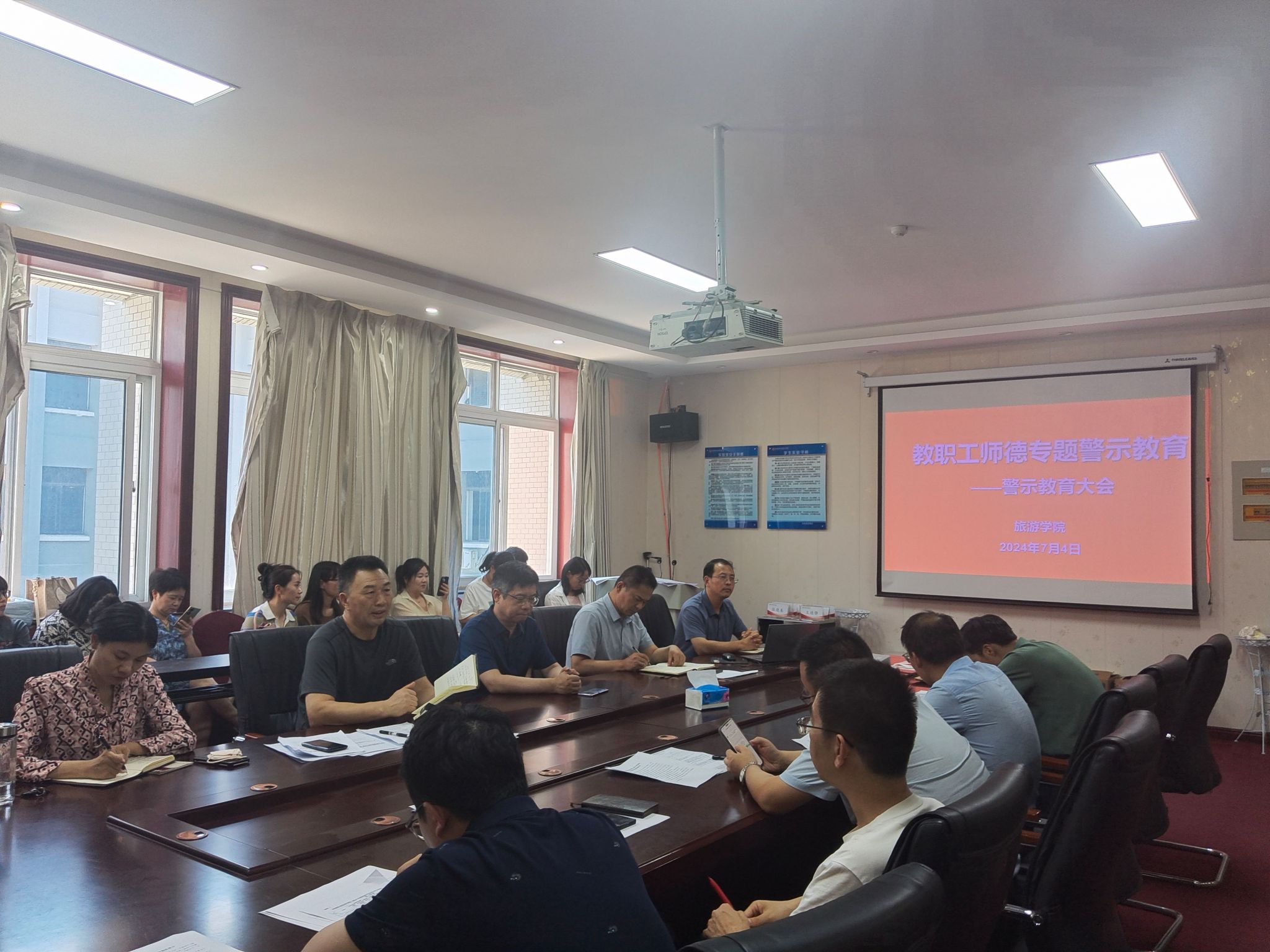 为加强新时代师德师风建设,按照学校《关于深入开展师德失范问题专项整治工作的通知》要求,7月4日下午,旅游学院在二号楼C423会议室召开师德师风教育专题会议,学院全体教职工参会,会议由院党委书记权太举主持。