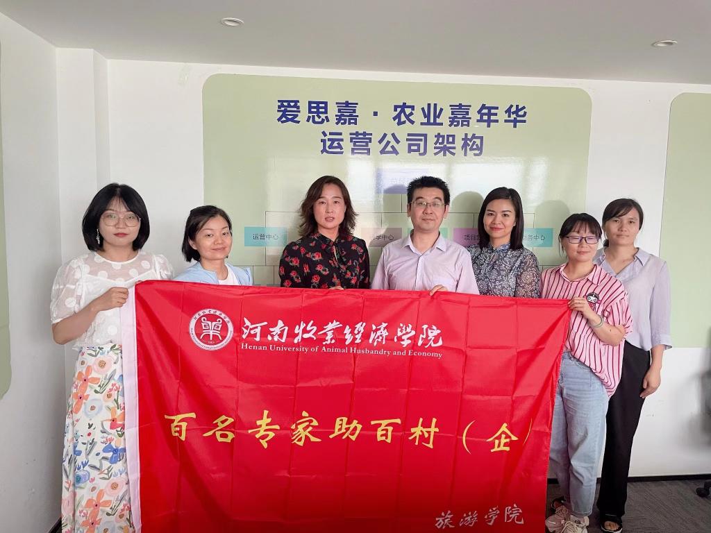 扎实推进“百名专家助百村(企)”工程(“双百”工程),助力地方乡村振兴发展,822日,旅游学院旅游基础与创新教研室主任肖鸿燚副教授带领教研室老师开封市祥符区爱思嘉农业嘉年华景区深入调研并指导工作,受到开封大宏爱思嘉农旅集团常务副总裁付娟等企业领导的热烈欢迎。