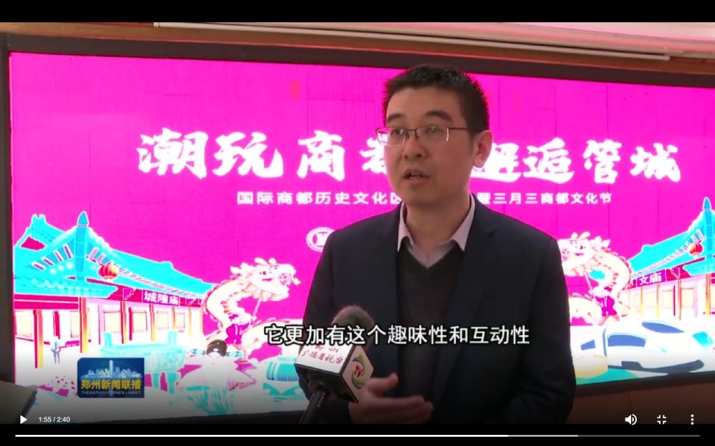 肖鸿燚副教授作为此次活动总策划,受邀主持“商都文化节”媒体见面会,就“商都文化节”的意义、理念、内容、分区情况、创意活动设计等情况进行了说明,在接受郑州电视台以及相关媒体采访时,针对商都文化节的特点、beat365英国官方网站beat365英国官方网站助力“商都文化节”活动等内容进行了答疑。该新闻于4月13晚郑州新闻联播播出,并同时在河南日报、郑州日报、今日头条、凤凰新闻、中原网、商都网等媒体平台报道。