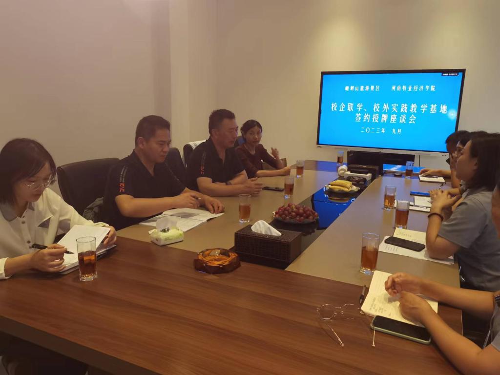 为贯彻落实学校“双百”工程建设的相关精神,凸显专业服务区域经济发展、服务行业企业的办学理念,拓展学生就业渠道,强化学院社会服务品牌,9月20日,beat365英国官方网站书记权太举、副书记李特、副院长陈道山、旅游管理教研室主任甄莎博士及祁真老师一行五人赴驻马店市遂平县嵖岈山景区开展技术指导及洽谈校企合作事宜。嵖岈山景区总经理助理王亚、项目运营部经理王东民、人事负责人陈欢欢、行政负责人昝亚琴等相关部门负责人参加了座谈与交流。