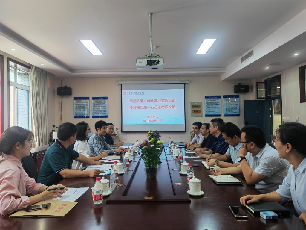 随后双方就九峰山景区的发展定位、游览项目设置、研学课程开发、民宿和酒店建设等方面展开了热烈的讨论,并深入对接了人才培养需求信息,在“双师型”教师的培养、创新人才培养方案等诸多领域达成共识,双方均表示将进一步加强交流,携手共进,共同搭建“资源共享+协同育人”合作平台,为培养符合社会需求的高质量、高素质、应用型人才,实现共赢发展共同努力。