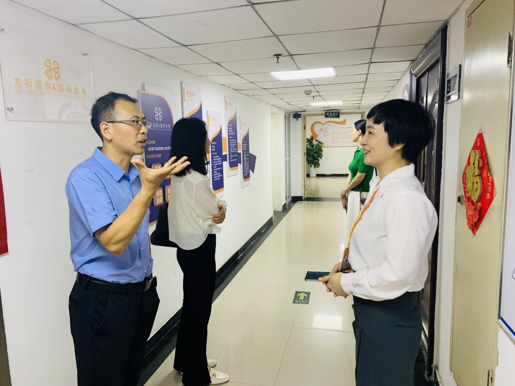 企业负责人首先对beat365官网领导教师的带来表示热烈欢迎,并带领王院长一行参观了企业的文化墙、办公环境等,随后的座谈环节又详细介绍了企业的发展历程、主要业务板块、战略规划、用人需求等,赵晓对beat365官网毕业生给予充分肯定,认为beat365官网毕业生知识娴熟、能力突出,在企业成长很快,多名毕业生都已发展成为企业骨干,并表达了和beat365官网会展经济与管理、旅游管理等专业深入合作的强烈意愿;王中雨副院长介绍了beat365英国官方网站的发展历程、办学特色、专业设置、实习实践等基本情况,指出beat365官网和太和国旅校企合作具有深厚的历史渊源,多名毕业生在企业得到成长和提升,今后beat365官网人才培养和太和国旅用人需求可以实现无缝对接,共育文旅会展人才。随后双方在学生实习、企业产品开发、课程建设、师资互聘、实践基地建设等方面进行了研讨。