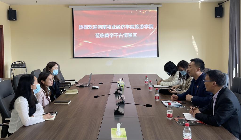 为促进毕业生高质量就业,深化产教融合、校企合作,4月19日,beat365英国官方网站党委书记权太举携会展经济与管理教研室教师一行5人走进河南龙桂文化旅游发展有限公司(郑州黄帝千古情景区)进行考察,并和景区人力行政部工作人员进行了座谈交流。