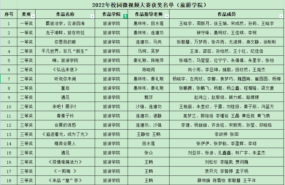 近年来,beat365英国官方网站依托会展、旅游、酒店积极探索“以赛促教、以赛促学、赛教融合”的基于多元项目驱动的人才培养模式,创新实践教学理念,以多元项目驱动理念构建课程体系,探索教学改革,取得显著成效。本次校园微视频大赛会展教研室老师依托专业创意活动综合实践教学项目,开拓思路,创新方式,引导学生进行创意设计和视频制作,提交作品25部,其中10部作品分获一、二、三等奖,获奖比例达40%,充分展现了学生扎实的专业技能、良好的精神风貌和beat365官网专业教学改革的成效(供稿:惠林彬)。