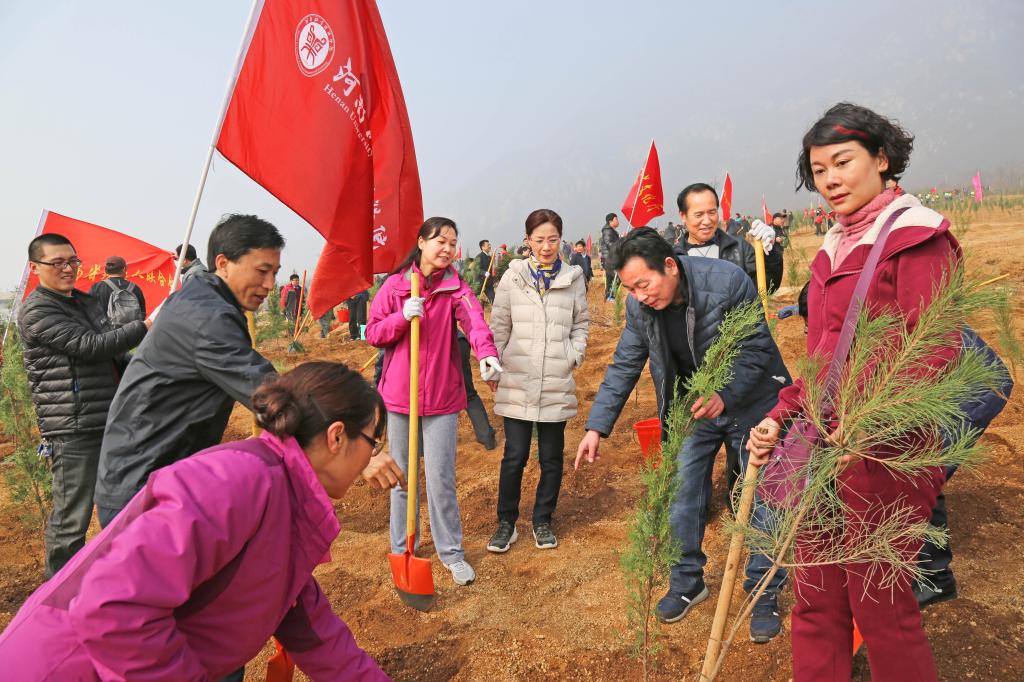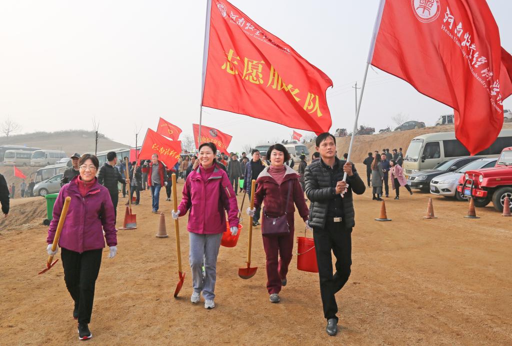 3月11日,在第40个植树节来临之际,在副校长杨志清带领下,beat365官网一行15人来到登封市陈家门义务植树基地,参加省直文明办组织的省直义务植树活动。