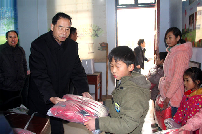 12月11日,校工会主席田留栓在宣传部长王凌彬、文明办主任吴达、原宣传部副部长韩国立等的陪同下来到商水县曾楼村,走访慰问了曾楼村困难群众,为贫困留守儿童送去了过冬棉衣,并和帮扶组成员单位省地质矿产勘察开发局王道乐处长一起探讨了下一步帮扶工作。