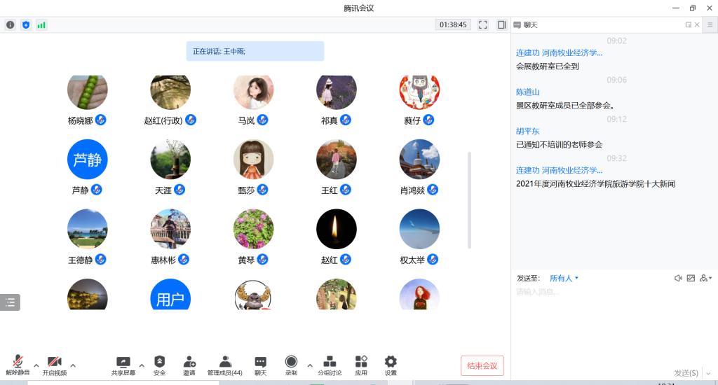 随后,王德静院长对2021年的工作进行了简要总结,从“十件大事儿”回顾了学院取得的成绩,对全体教师表示衷心感谢;从党建思政工作、教学工作、科研工作、工会工作四方面向老师们重点介绍了2022年度学院工作计划。王院长希望全体老师:1.创新工作抓落实,有思路、有方法、有亮点;2.主动作为敢担当,想作为、敢作为、去作为;3.改善生态促融合,讲政治、多谈事、少谈人。