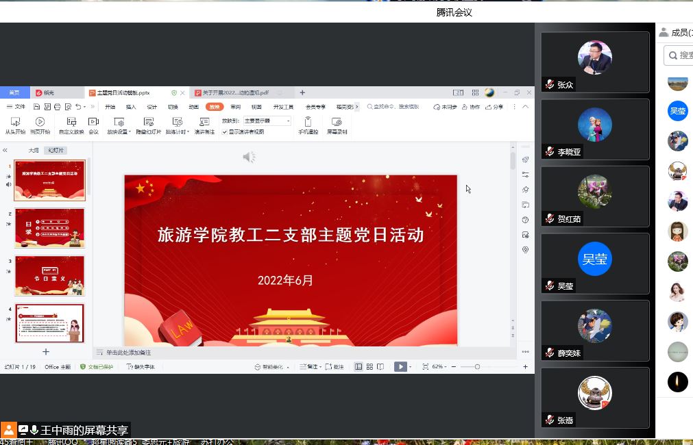 6月16日中午,beat365英国官方网站教工二支部在腾讯会议平台,开展线上主题党日活动。会议由支部书记王中雨主持,支部全体党员参加。