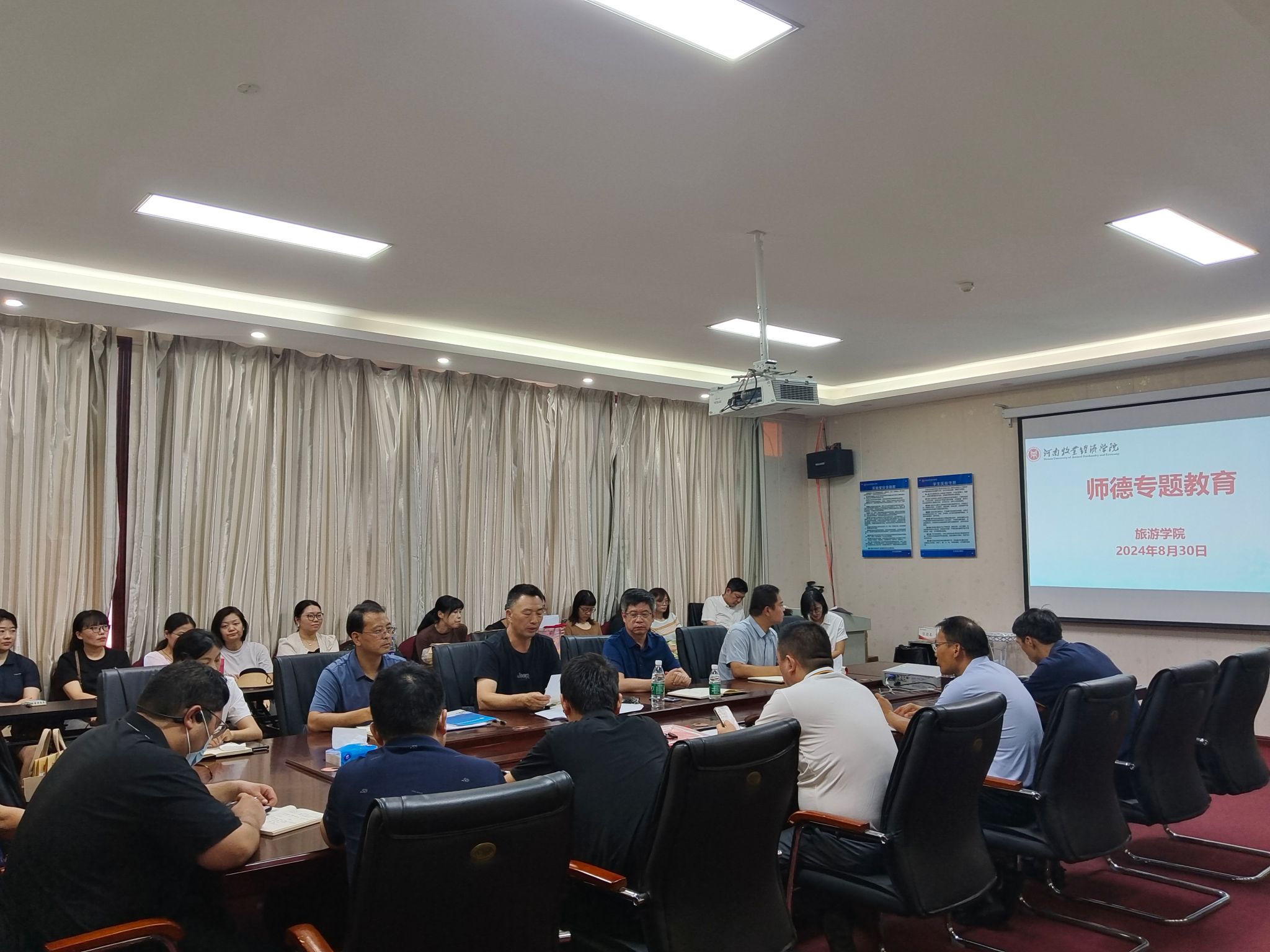 8月30日上午,beat365英国官方网站在二号楼C423议室召开新学期全体教职工大会,传达学校2024年秋季学期中层干部会议精神,安排部署新学期工作。会议由院长王德静主持,全体教职工参会。
