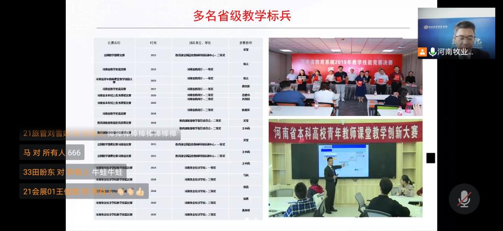 会展经济与管理教研室主任连建功以《会天下英雄 展世间精彩-——会展经济与管理专业》为题,用风趣幽默的方式介绍了专业发展历程,会展专业在河南省高校和行业的影响力。拓展了新生的专业视野,提升了学生的专业认可度。