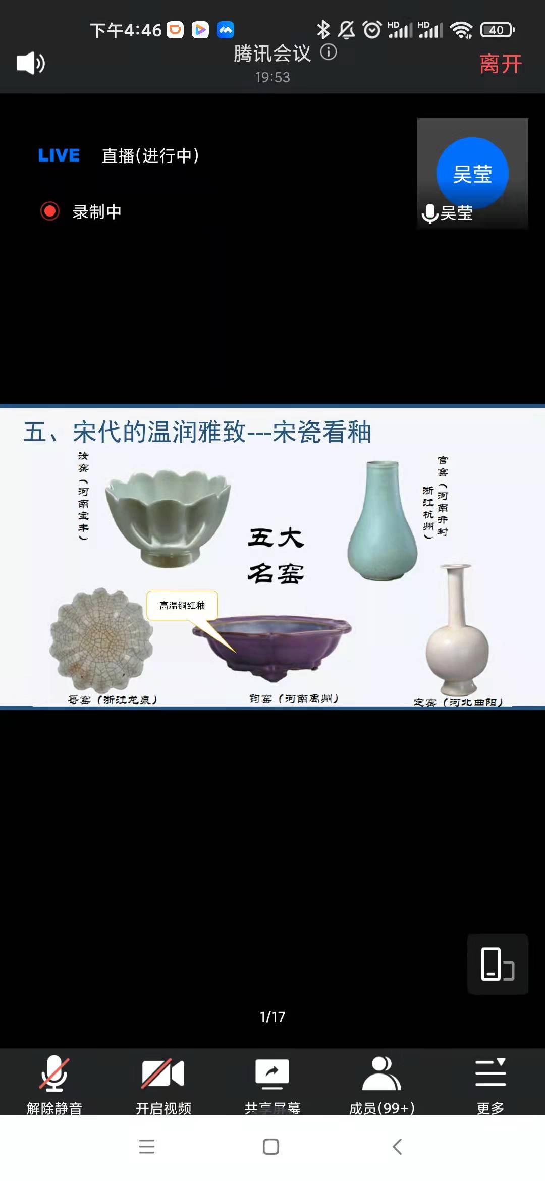吴莹老师本次主讲的课程为《旅游审美之瓷器审美》。课堂上吴老师渊博的专业知识,深入浅出的讲解,流畅优美的语言,丰富饱满的情感,一气呵成的节奏,深深地吸引了广大师生,让人如沐春风,如痴如醉,沉浸在瓷器的海洋里难以自拔。本次课程不仅为师生带来了一场文化盛宴,而且激发了学生浓厚的为中华之崛起而读书的爱国之情。