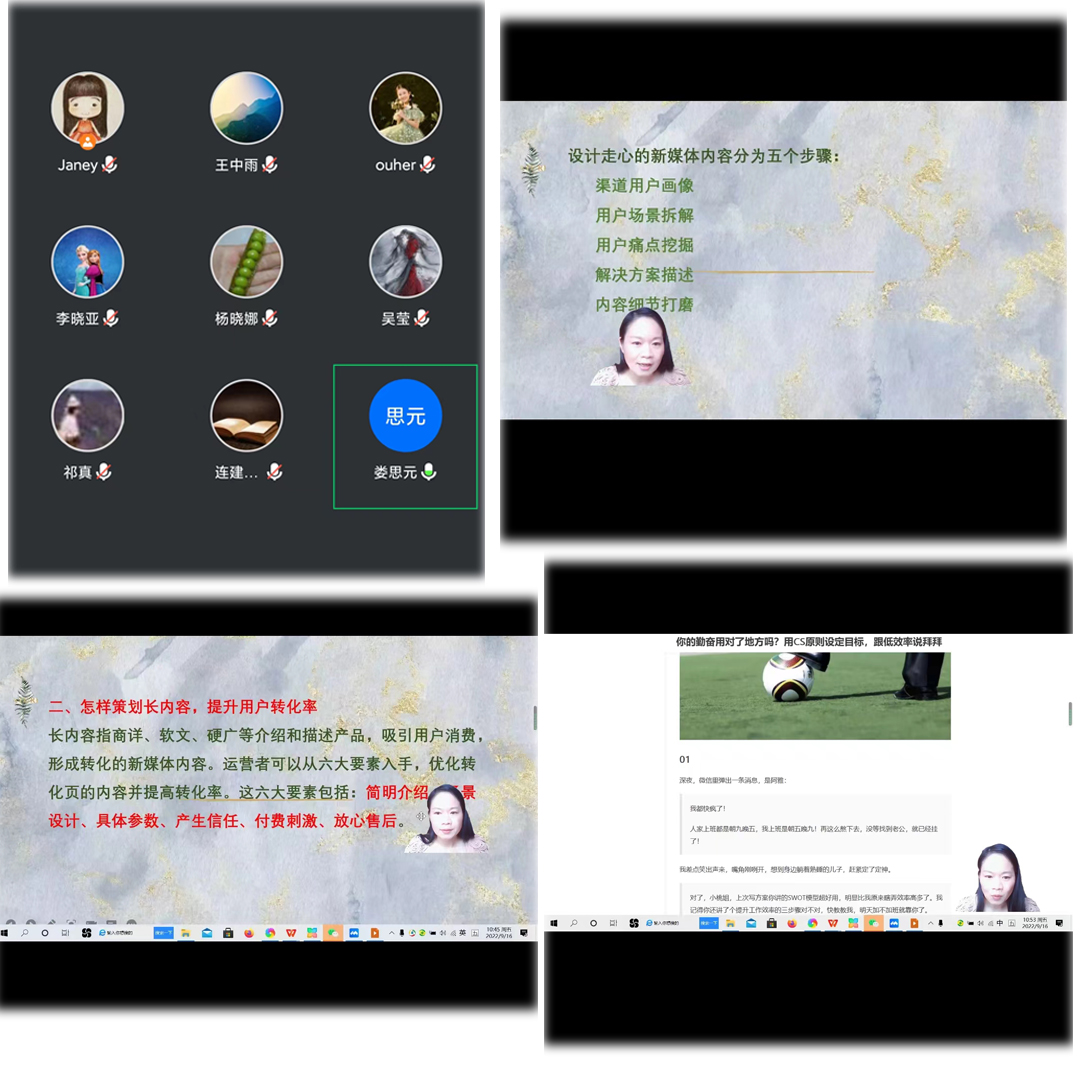 20229 16日上午第三节,beat365英国官方网站开展了本学期首场教学观摩课活动。旅游管理教研室的李晓亚老师通过腾讯会议进行了《旅游新媒体》课程的线上直播授课,beat365英国官方网站院长王德静、副院长王中雨和部分教师参加了本次观摩课活动。李晓亚老师本次课程的主题是旅游新媒体的内容运营技巧。她首先以beat365官网公众号的运营与爆款文章为引入,讲解了创作走心的新媒体内容的重要性,然后对设计走心的新媒体内容的五个步骤进行了详细讲解,最后结合丰富的案例讲解了长内容和短内容的策划运营技巧。