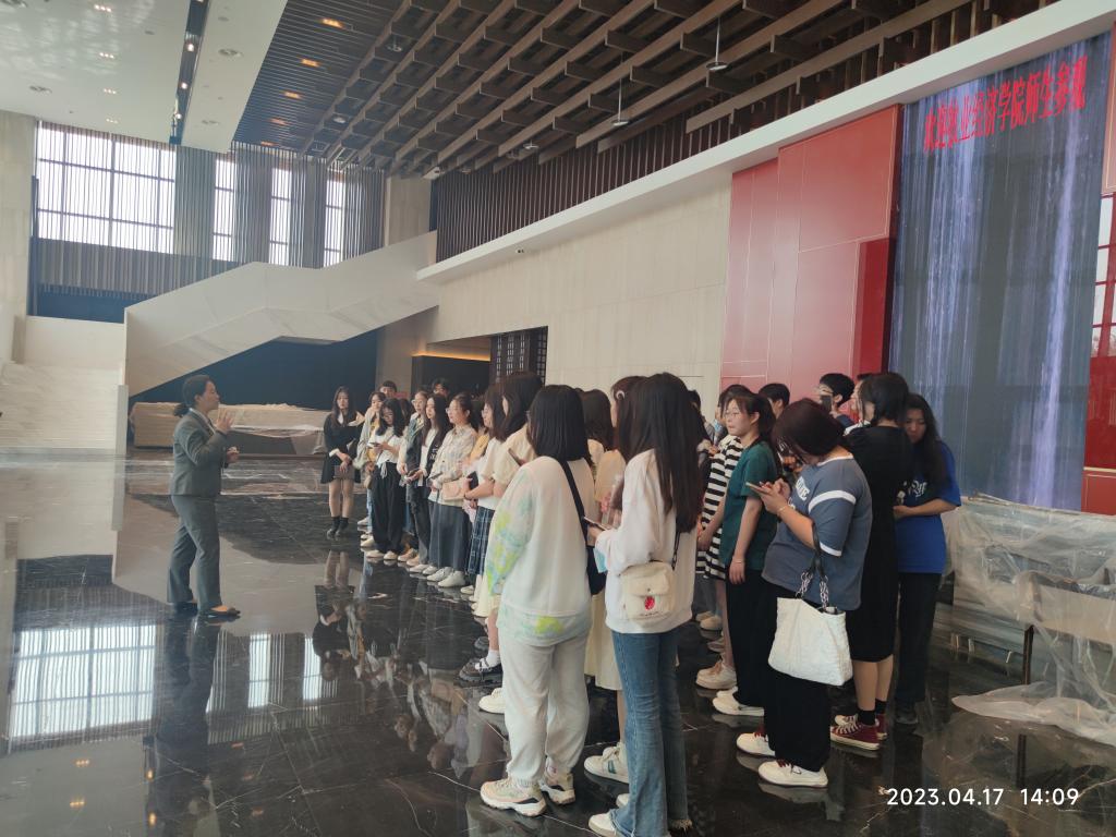 2023年4月17日下午,beat365英国官方网站酒店管理专业组织22级本科学生到郑州仟那元熙酒店进行相关实践活动。学生们在酒店工作人员耐心有序地带领下,分组进行参观。