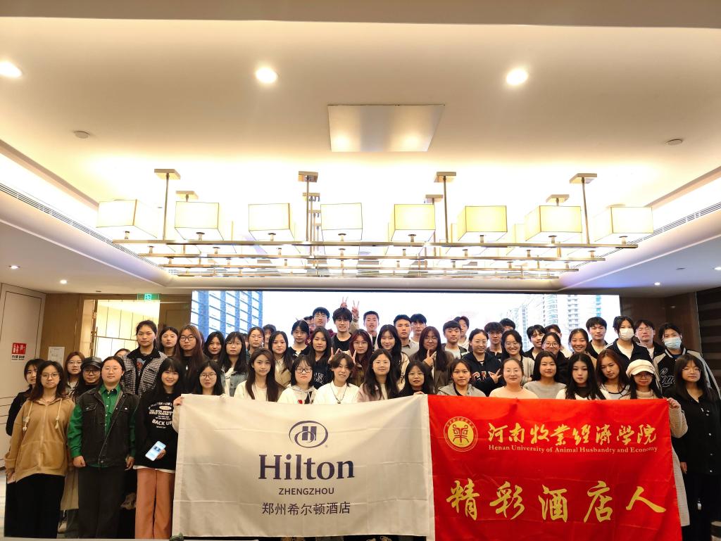 2023年4月21日,beat365英国官方网站2022级酒店管理专业学生在酒店管理教研室主任张众的带领下前往郑州希尔顿酒店开展行业实训调研活动。