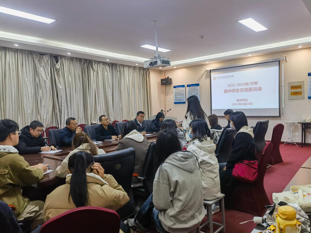 2023年4月24日13点,beat365英国官方网站在C423会议室召开2022-2023学年第2学期期中教学专题师生座谈会,王中雨副院长、教学办主任、各教研室主任及各专业班级学生代表参加了会议。