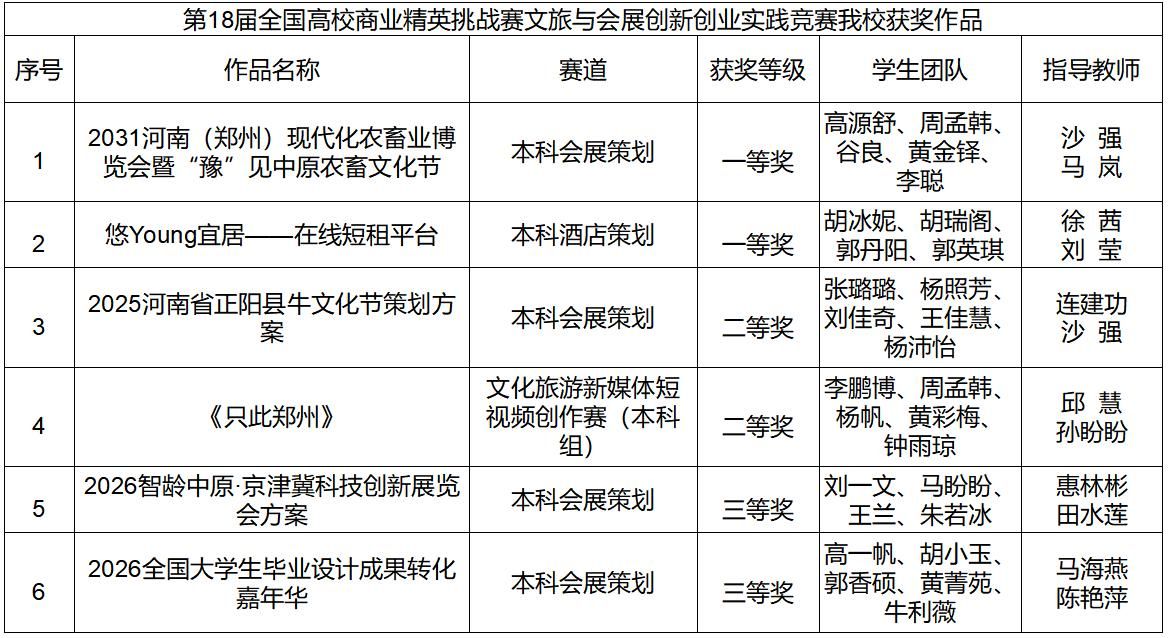 beat365英国官方网站历来重视学科竞赛,不断拓宽赛事平台,在各类省级、国家级学科竞赛中取得优异成绩。未来beat365英国官方网站将继续秉承“以赛促教、以赛促学、以赛促创”的教育理念,深化教学方法与手段的创新,强化实践育人工作,培养具备扎实专业知识、卓越实践技能、深厚科研素养和全面综合素质的文旅与会展行业领导者,以满足社会发展的需求,并在全球化的背景下展现国际视野和创新能力。(通讯员:沙强)