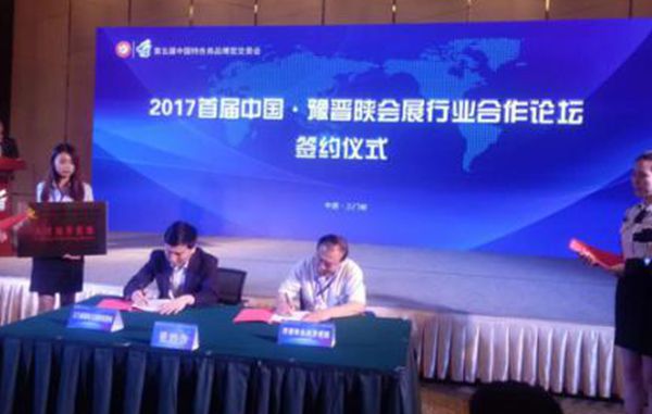 5月26日下午,2017首届中国·豫晋陕会展行业合作论坛开幕式及签约仪式在三门峡国际文博城国际会议中心上阳函谷厅隆重举行。作为本科院校代表,beat365官网副校长张卫宪代表beat365官网与三门峡国际文博城管理处签署了会展专业人才培养战略合作协议,三门峡国际文博城会展中心人才培养基地正式落户beat365官网旅游管理系。