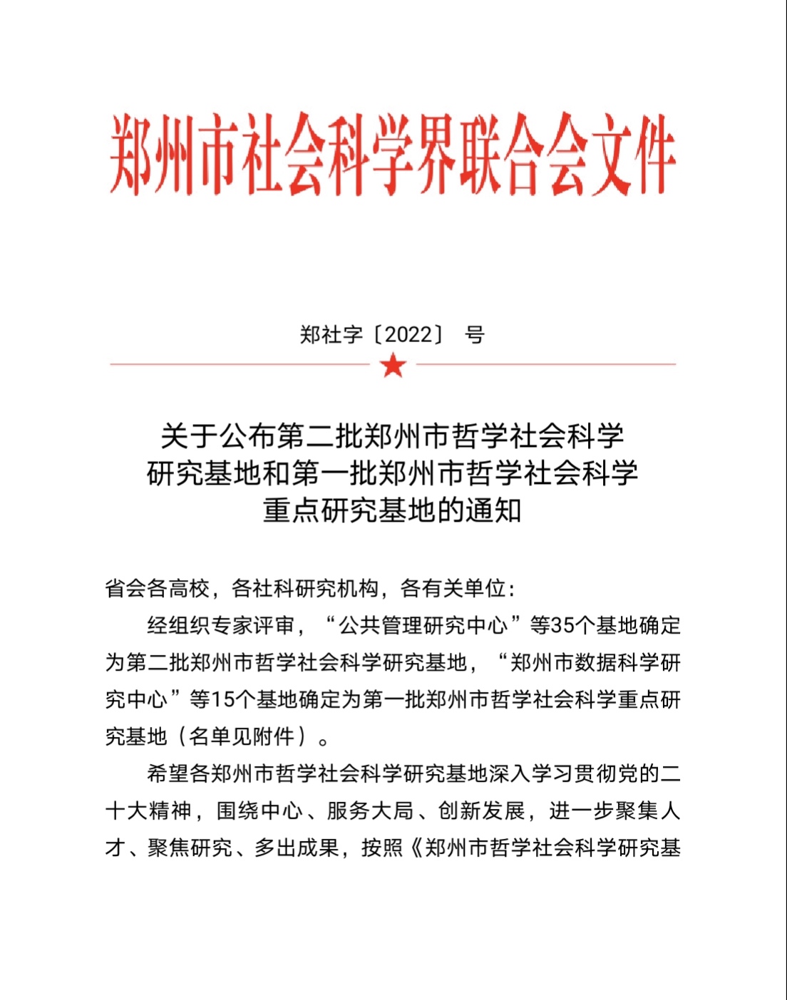 12月2日,郑州市社科联公布了第二批郑州市哲学社会科学研究基地和第一批郑州市哲学社会科学重点研究基地的名单,beat365官网乡村民宿产业研究中心入围第二批郑州市哲学社会科学研究基地名单、乡村旅游与休闲农业研究中心入围第一批郑州市哲学社会科学重点研究基地名单。