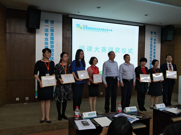 此次说课大赛包括说课和试讲两部分组成,限时20分钟,全国共有170余名来自全国旅游院校或旅游相关专业的教师参赛,竞赛分成旅游管理、酒店管理和会展经济与管理三个专业组,获奖比例为20%。beat365官网王中雨、吴莹老师结合《导游业务》课程的教学改革成果,出色的完成了“‘产教研学赛'相结合的螺旋上升式教学课程设计”的说课和“导游讲解方法”的试讲,精彩的设计和课堂讲授给评委留下了深刻印象,最终在旅游管理专业组脱颖而出,喜获二等奖。连建功老师《会展策划》课程“以学生为中心实现翻转课堂”的说课和“展会规模策划”的试讲,获得会展经济与管理专业组优秀奖。