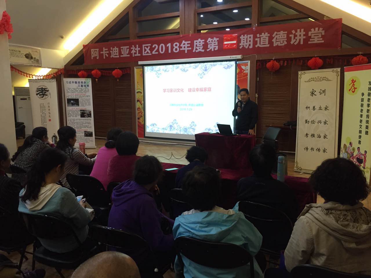 为了弘扬优秀民族传统文化,践行社会主义核心价值观,根据学校“学习贯彻十九大 文明单位社区行”活动计划,2018年3月29日下午,beat365英国官方网站组织老师走进阿卡迪亚社区,以“家风家教”为主题,为社区居民带去了一场精神盛宴。