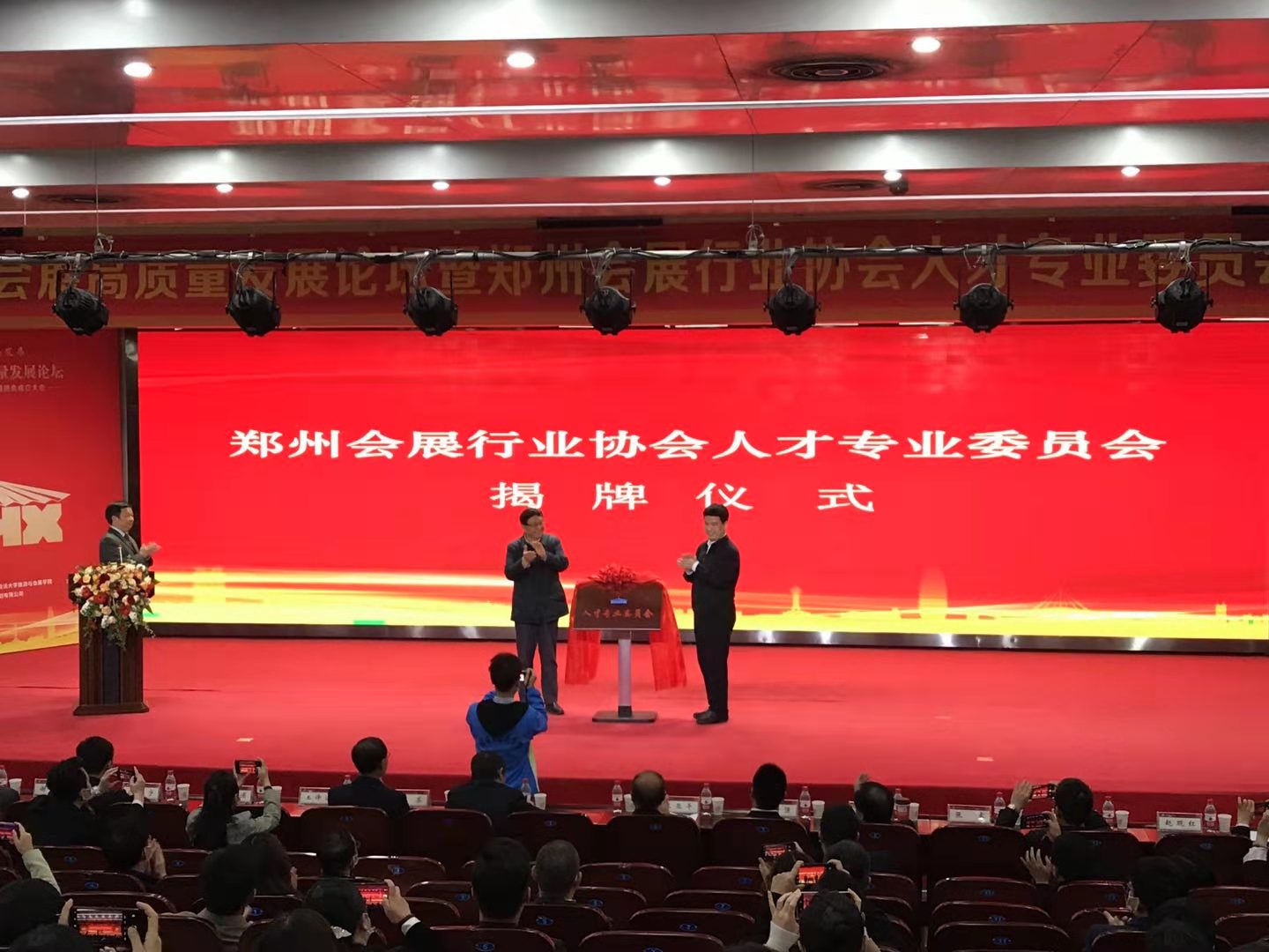 河南财经政法大学副校长刘荣增致欢迎词,河南省商务厅二级巡视员王苏、河南省政协经济委员会主任孙新雷、郑州会展行业协会常务副会长谢军、郑州会展行业促进中心副主任王亚平、郑州会展行业协会人才专委会主任赵现红先后致辞发言。大家一致认为人才对会展业发展的重要意义,郑州市会展行业协会人才专委会的成立为郑州乃至河南会展业人才建设提供了思路。大会为郑州会展行业协会人才专业委员会举行了揭牌仪式,beat365英国官方网站beat365英国官方网站当选人才专业委员会副主任单位。