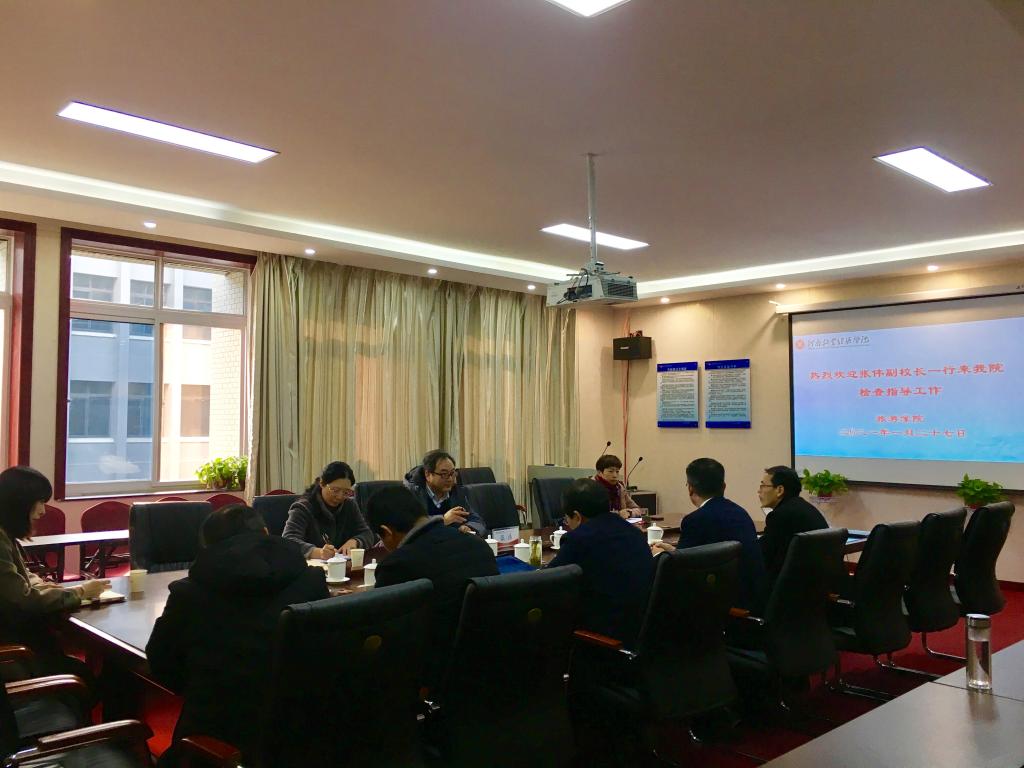 为进一步了解学院教学评建工作推进情况,1月27日下午,评建工作推进组一行人在张伟副校长带领下来beat365官网检查指导评建工作。学院班子成员和教研室主任参与汇报检查。