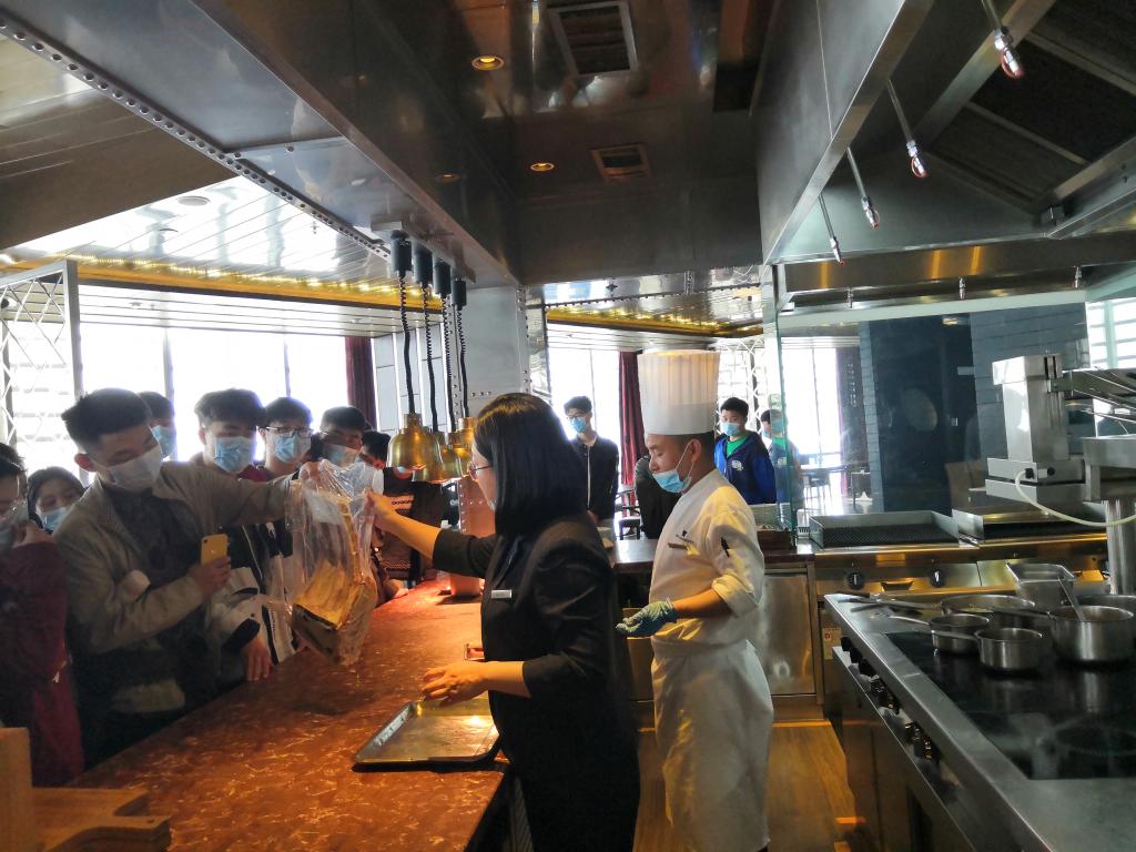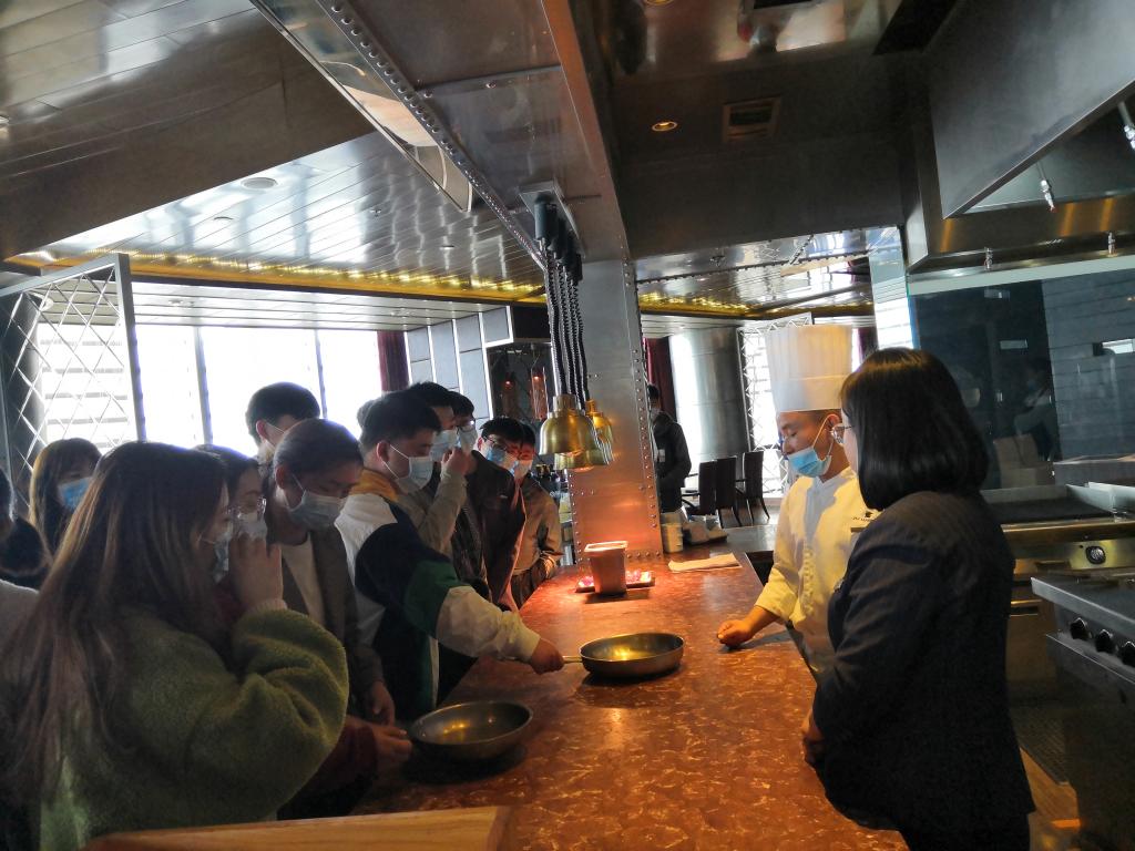 在JW万豪酒店的精心安排下,beat365官网学生参观调研了酒店厨房及餐饮区域,酒店大厨向在场学生介绍了酒店厨房设施设备的使用,带领学生了解了酒店厨房的全套工作流程。参观后,酒店大厨就酒店厨房从业人员的基本情况和素质要求与beat365官网学生展开了深入交流。