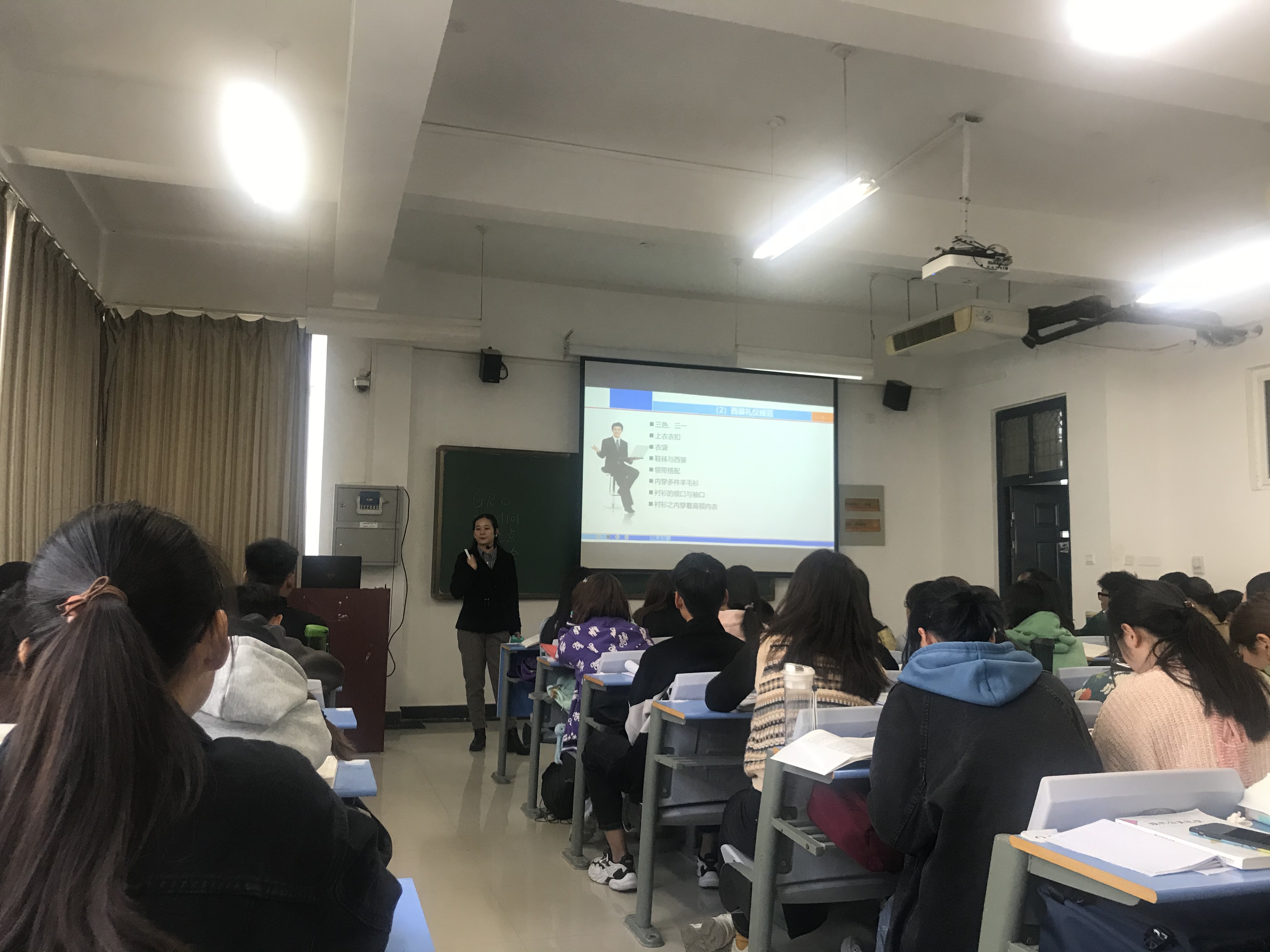 在《旅游学概论》课堂上,贺红茹老师采用线上与线下相结合的教学方式使学生轻松理解了旅游资源的相关知识,贺老师在课堂上结合案例进行讲解的同时巧妙融入思政元素,引起学生的共鸣和思考。整个课堂组织严密,气氛活跃,得到了在场师生的一致认可。教学经验丰富的巩隽老师由外交着装为引例展开仪表礼仪内容的讲解,巩老师采用启发式的教学方法,让学生带着问题学习并展开热烈的讨论,整个课堂气氛活跃,教学过程高潮迭起。