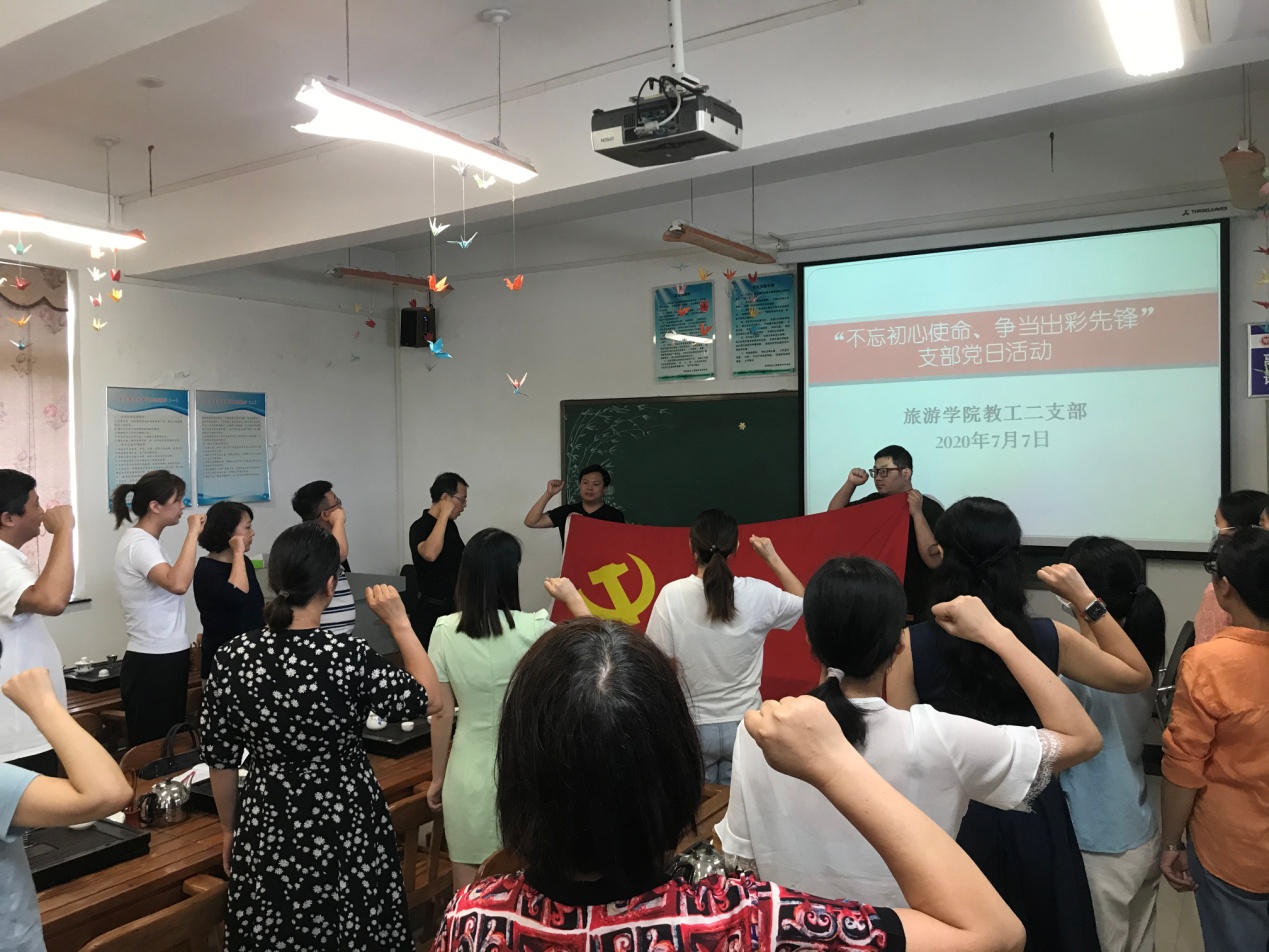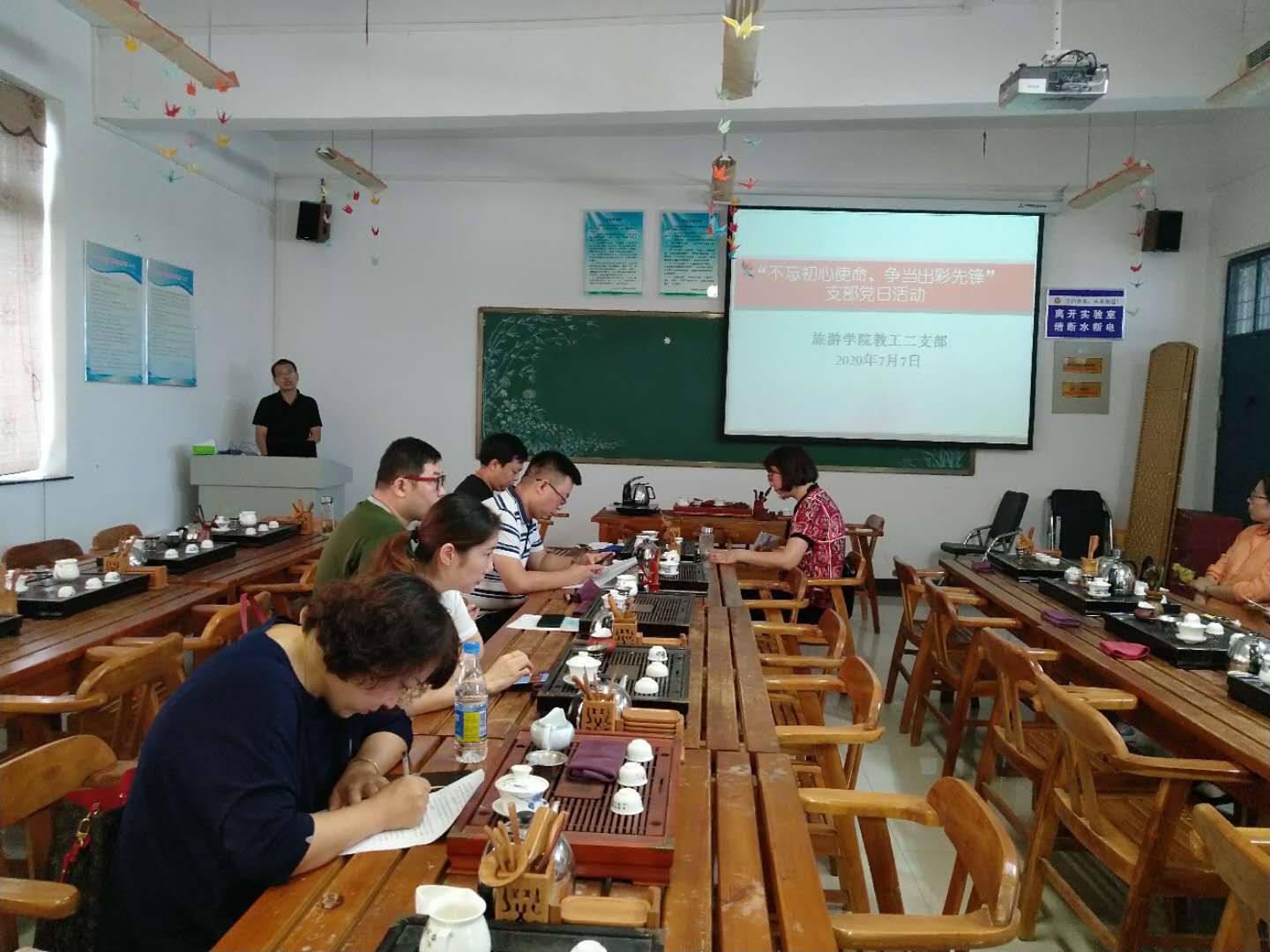在中国共产党成立99周年之际,为铭记历史、再创佳绩,2020年7月7日上午beat365英国官方网站教工二支部在二号教学楼C610室开展了“不忘初心使命,争当出彩先锋”主题党日活动。