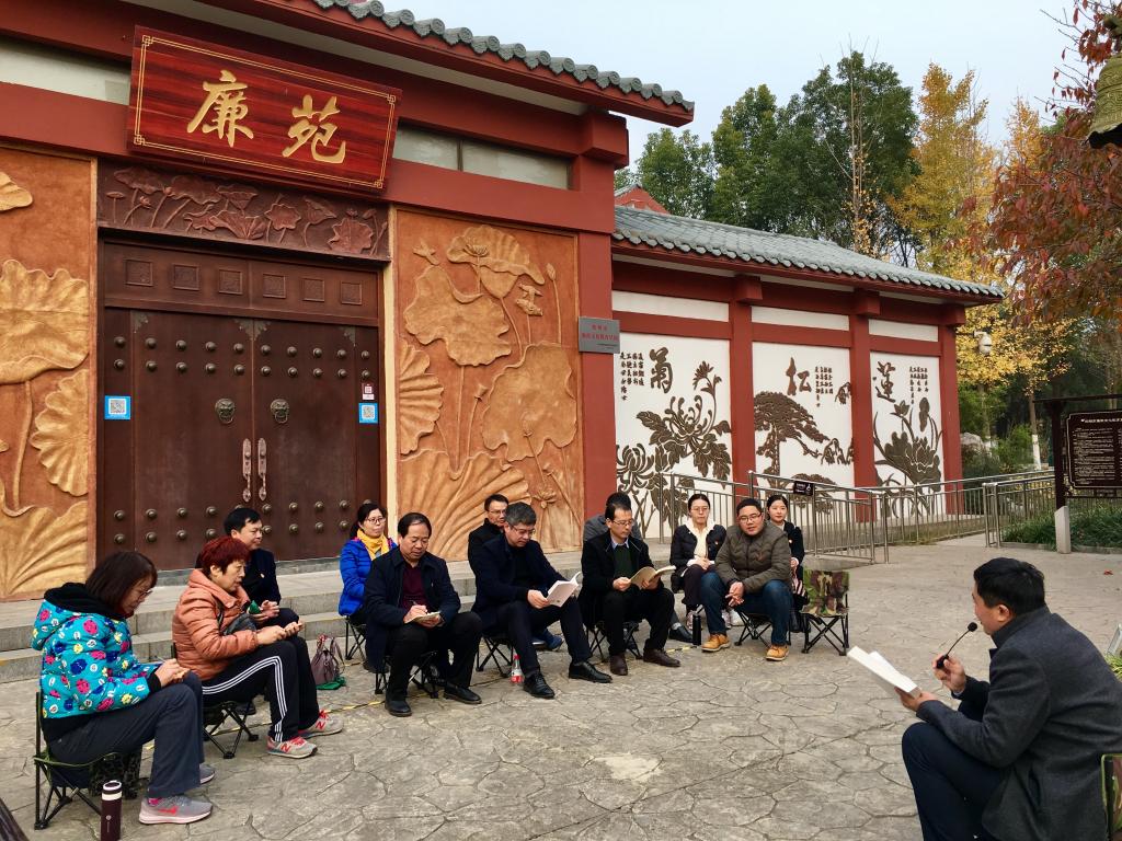 参观结束后,beat365官网在廉苑门前广场召开了中心组学习(扩大)会议。院党委副书记陈明领学了习近平总书记关于廉政教育的重要论述,通报了几起发生在教育系统的违法违纪典型案例。院党委书记李喜民肯定了本次学习的形式和效果,要求党员同志要不断加强学习,踏实工作,廉洁自律,做好表率。院长王德静结合自身在校巡察办工作的经历,强调所有党员干部都要时刻把纪律和规矩挺在前面,切实做到清正廉洁、敢于担当。此次中心组学习是beat365官网创新学习形式的一次积极尝试,把会场搬到室外,立看立学,收到了良好的效果。