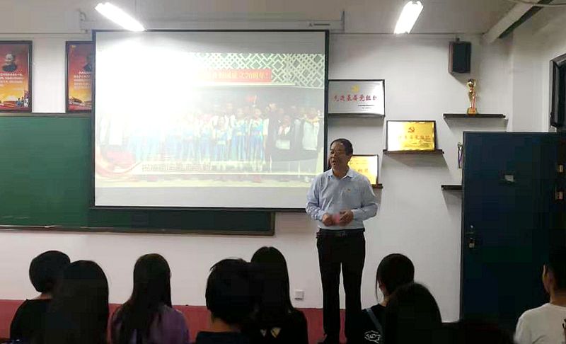 观看前,李喜民书记满怀激情地回顾了祖国70年来取得的成绩,勉励师生不忘初心、牢记使命,为祖国发展做出应有的贡献。李书记情到深处,赋诗一首,以抒爱国情怀。