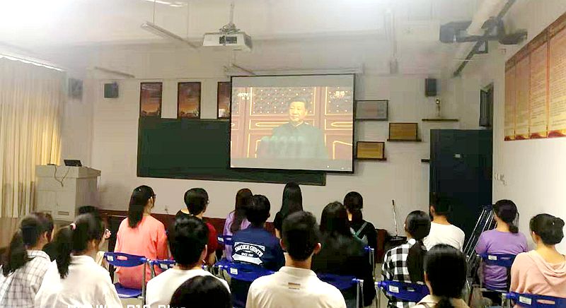 beat365英国官方网站组织部分师生共同收看庆祝中华人民共和国成立70周年大会